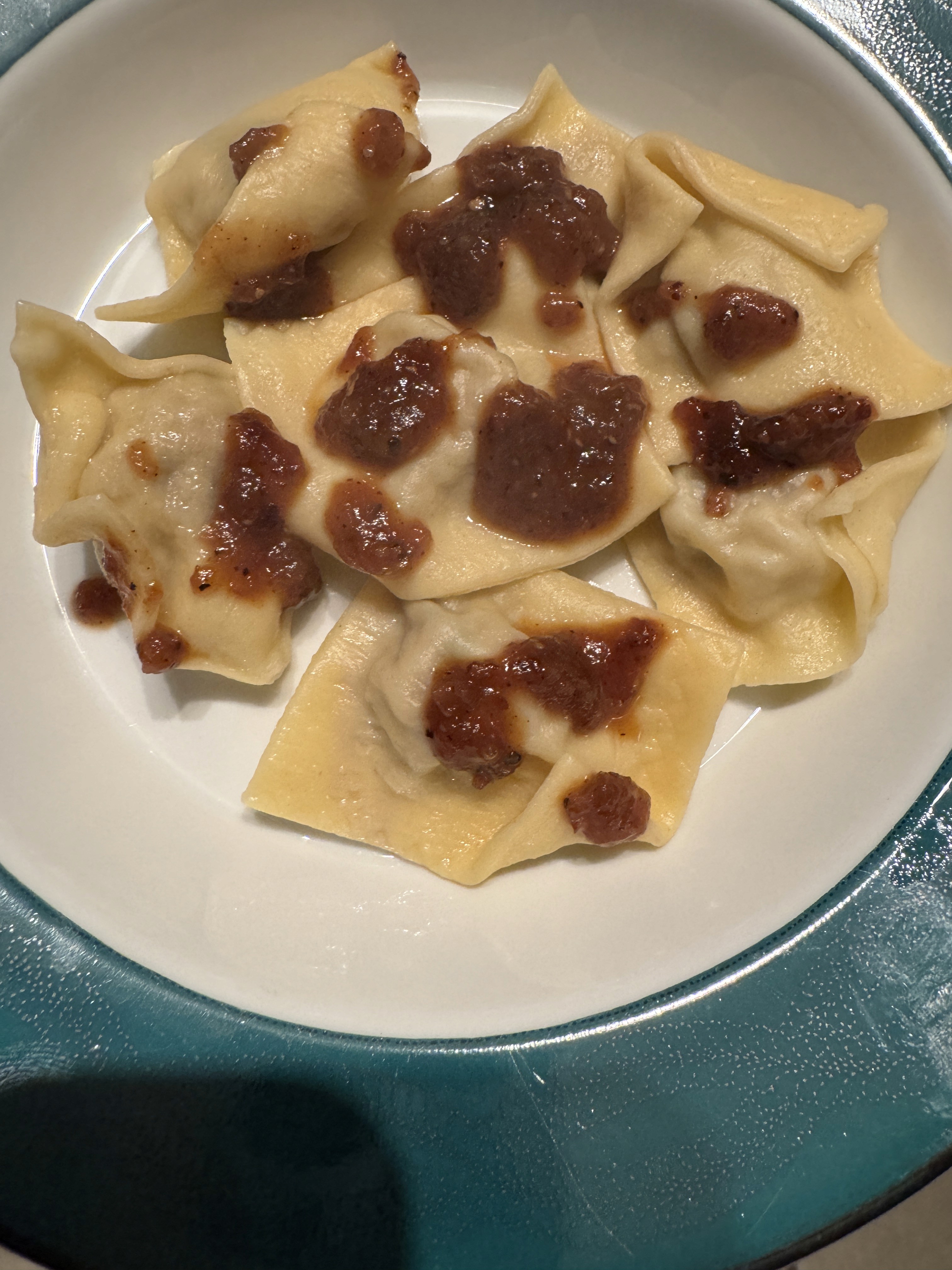 Mint-coriander lamb ripieni, vindaloo reduction